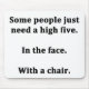 Para o amante do sarcasmo ntodos nós. A verificação para fora este espirituoso "algumas pessoas apenas precisa uns cinco altos. Na cara. Com uma cadeira." projete no roupa, nas canecas, nos mousepads, nos botões, e em outros presentes originais.