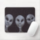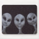 Um desenho a lápis colorido de três Alienígenas de ETs contra um céu preto estrelado.