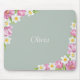 Esta elegante almofada de rato floral apresenta tulipas rosa macias e narcisos brancos dispostos num clássico design de canto de jardim. Colocada contra um fundo verde suave e personalizada com o seu nome, traz charme botânico refinado para a sua secretária.