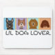 Quatro cães todos raças e texto diferentes que lê de "o amante do cão Li'l" em t-shirt, em canecas, em sacolas, em etiquetas, e em mais do amante do cão.