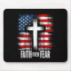 Mousepad American Usa Flag Christ Faith Over Fear With Cros