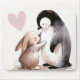 Um belo coelho abraça gentilmente um pinguim criando uma cena alarmante de amizade e afeto