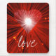 Design moderno com um coração brilhante, brilhante, vermelho e branco sobre um fundo vermelho, branco e preto brilhante. Mousepad com um design personalizável vermelho, preto e branco para você personalizar com seu próprio texto, imagens e ideias. O texto pode ser facilmente alterado usando o modelo fornecido ou clique no botão 'Personalizar o texto' para fazer outras alterações. Criado por Jess Perry usando fotografias originais e técnicas digitais.