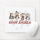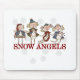 Quatro adoráveis anjos de Natal com chapéus de inverno e protetores auriculares cada um seguram um boneco de neve e o texto diz "Anjos de Neve" em camisetas coloridas de férias, camisetas, cartões de saudação, canecas, mousépias e outros itens de férias!