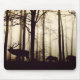 Uma neblina densa na floresta destaca um alce e javalis selvagens em um jogo de seguir o líder.