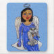 Mousepad Anjo Azul bonito segurando gato na nuvem