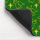 Este mouse pad tem uma design de Natal de anjos e estrelas espalhados sobre o design num fundo verde.