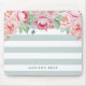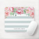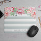 O moderno peonense floral mousepad apresenta listras verdes de menta pastel chic com um buquê de pincel e marucas florescendo do topo. Personalize com um nome, monograma ou mensagem usando o campo fornecido.