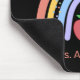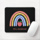 Este mouse pad da professora apresenta um arco-íris de cor pastel bonito, acentuado com um lápis e uma maçã vermelha. O fundo é preto, que oferece um contraste ousado com o arco-íris colorido. Personalize com o nome do professor.