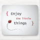Citações inspiradas. "Aprecie as coisas pequenas" em um fundo cinzento com uma joaninha | Bigstock® - todos os direitos reservados.