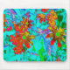 Mousepad Aqua Tropical com Flores Amarelas e Laranja