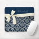 Mousepad Arco de prata azul elegante do diamante do damasco