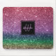 Garganta glamour arco-íris cores falso brilho Mouse Pad com um monograma elegante Nome cristão e inicial que você pode facilmente personalizar para ajustado do quadrado negro. Item de mesa giro impressionante para adicionar um toque de pizazz ao seu escritório doméstico, com a coordenação de produtos de papelaria disponíveis para sustentar um tema.