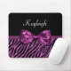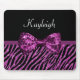 Seu adolescente sentirá imergido no luxo feminino com este mousepad roxo e preto chique do desenhista do brilho da zebra do impressão com uma fita da faísca do sequin amarrada em um arco luxe. Personalize estes glitz e design animal glam da forma do impressão adicionando seu nome. Imagem impressa do plano, brilho nao real ou fita.
