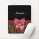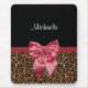 Estada na forma com este mousepad marrom à moda do impressão do leopardo da pele com uma fita vermelha elegante amarrada em um arco chique. Personalize este design animal moderno e elegante do impressão adicionando seu nome. Imagem impressa do plano, pele ou fita nao real.