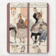Uma mulher está colocando seu batom e outra está tendo seu cabelo estilizado nesta impressão de arte francesa.