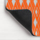 Este mouse pad tem um design de deco de arte de formas de diamante em um campo de laranja.