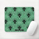 Mousepad Art Deco Green Black White Retro Peacock Padrão