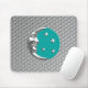 Mouse pad em uma clássica lua de Deco de Arte e estrelas design em prata escovada e esmalte em turquesa / pavão, sobre um fundo metálico de prata falsa