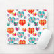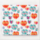 Este mouse pad tem um design de corações Art Deco feito de ouros juntos em tons de rosa, azul, verde, ouro e vermelho.