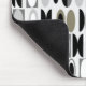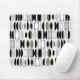 Este mouse pad tem um design de arte feito de ovais e meio ovais em preto, branco e tons de cinza.