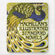 Ilustração antiga de pôster de Arte Nova Macmillan's Illustrated Standard Novels, Edição Pavão, 1896 por Albert Angus Turbayne. Este pôster de Arte Nova apresenta um grande pássaro, padrão de penas de pavão em tons azuis e dourados.
