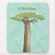 O Mousepad apresenta um grande baobá, proeminente na África e na Austrália, sobre fundo aqua manchado com aqua aquarela/pontos dourados. Personalizar com nome ou monograma