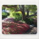 Uma cama de impatiens do rosa quente, uma árvore swirly-limbed, um trajeto do tijolo e branco, cerca de piquete cria o design perfeito para mousepads, ímãs, canecas, os cobrir de iPad/iPhone, ornamento e portas copos de coordenação. Personalize, misture & combine, como você por favor.