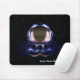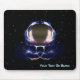 Uma imagem fractal azul e roxa que se assemelha ao capacete e ombros de um astronauta em um fundo estrelado. Adicione seu próprio texto.