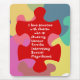 Autismo Acrótico apresenta uma peça de um quebra-cabeça de serra contra um quebra-cabeça montado, com o texto. "Eu amo alguém com autismo que é: Incrível, Único, Excelente, Interessante, Especial, Magnífico"