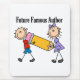 Uma figura menino e menina da vara leva um lápis amarelo enorme e o texto lê do "o autor famoso futuro", um design bonito em t-shirt, canecas, cartões, sacolas, e outros artigos perfeitos para a pessoa que ama a escrita!