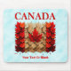 A bandeira nacional canadiana das folhas de bordo, formada a partir das folhas caídas do outono, numa imagem de fundo de neve. Leitura de texto, "CANADÁ" aparece em vermelho acima da bandeira. Personalize adicionando seu próprio texto adicional.