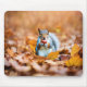 Esquilo de cinza em bruto, com bolota nas folhas do outono