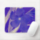 Flor de arte digital púrpura / azul no mouse pad com um aspecto texturizado de canvas.