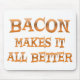 Os amantes do bacon sabem que não importa o que está indo sobre em sua vida boa ou má, bacon fá-lo-ão melhor. Aprecie este design bonito com as palavras que o bacon o faz toda melhor.