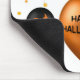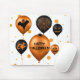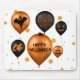 Feliz ilustração do Dia das Bruxas apresentando balões de festa em preto e laranja com um fantasma, uma bruxa, uma teia de aranha e aranha e jack-o-lanterna em um fundo branco.
