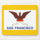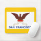 Mousepad com pavilhão da cidade de São Francisco, Califórnia; bandeira branca com fronteira amarela com ilustração de uma ascensão de fênix das chamas