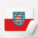 Mousepad com bandeira variante da Turíngia; design com duas bandas horizontais de vermelho e branco e emblema com leão no centro