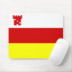 Mousepad com pavilhão da cidade de Bárbara, Califórnia; bandeira com tricolor vertical de branco, vermelho e amarelo, com ilustração de um forte vermelho no canto superior esquerdo
