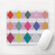 Este mouse pad tem um design de ouros Bauhaus em tiras roxas com um design para parecer como colcha.
