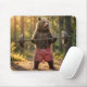 Mousepad Bear Lifting Weights In a Sunny Forest
