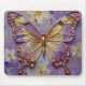 A mousepad with an illustration of a beautiful gold and purple butterfly surrounded by white and purple flowers. It's done with an impasto style and just emanates beauty and grace.
