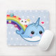 Mousepad Bebê bonito narwhal com arco-íris, nuvens e