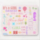 Uma bela composição feita de várias fontes coloridas e pequenos elementos para dar boas vindas a uma nova menina.