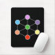 Elegante Tapete de Rato com um belo cubo de Metatron com pontos multicoloridos e uma estrela de Davi e o número 7 no centro. Este belo cubo de Metatron está em fundo preto.