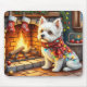 Mousepad Bichon Frise Fireplace with Christmas Lights