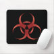 O símbolo do biohazard nas máscaras do vermelho com linha protecção. Os t-shirt, suam, botões, canecas, as bolsas, presentes.