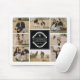 Photo collage mouse pad printed with a simple and elegant monogram with your initial, family name, and the year established in white against black.
