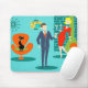 Querida, estou em casa! Este Mousepad do Casal de Cartoon da Era do Espaço Retroativo terá inveja do casal de cartoon em um mouse pad! O design apresenta um fundo turquesa com tijolos lacrimogêneos e uma lareira de cone verde-oliva. Um gato preto e elegante está sentado numa cadeira laranja elegante. Há um relógio de parede lacrimogêneo e uma lâmpada pendente de dois níveis em tons de amarelo, azul e preto. Na frente e no centro, há um distinto empresário martini a nadar num terno azul e gravata laranja. Ao seu lado, a sua loira bomba de uma esposa troféu está a vestir um vestido vermelho de bruxa e a segurar uma bandeja de martinis. Va-va-va-voom!