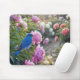 A bright bluebird perched on a peony in a lush garden filled with colorful flowers, as sunlight streamed through, enhancing the vibrant colors